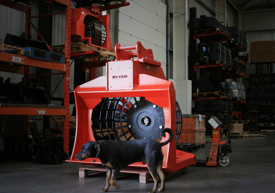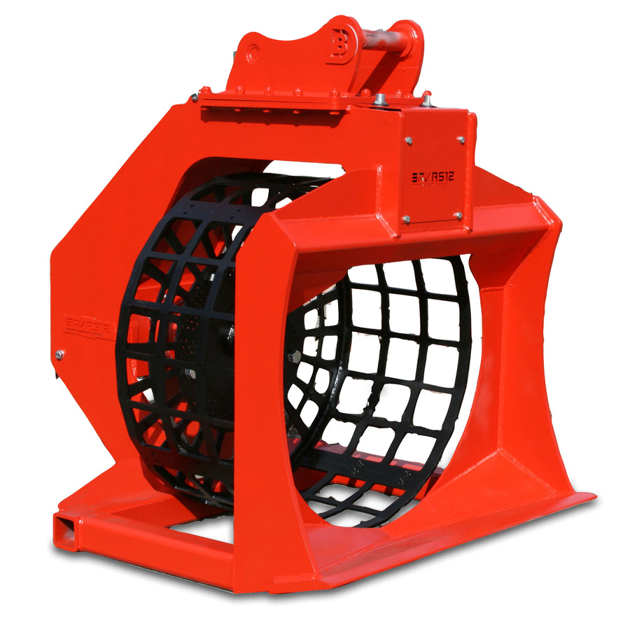 Tamis rotatif rapide et puissant pour pelles hydrauliques de 13 à 21 tonnes. Le BAV-RS12 est équipé de cribles permettant trois calibres de sortie : 25 mm, 50 mm et 75 mm.