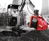 Débit : Les accessoires sont conçus pour pouvoir prendre le débit maximal de leur classe de pelle porteuse respective. Plus le débit est élevé, plus la mâchoire se déplace rapidement.