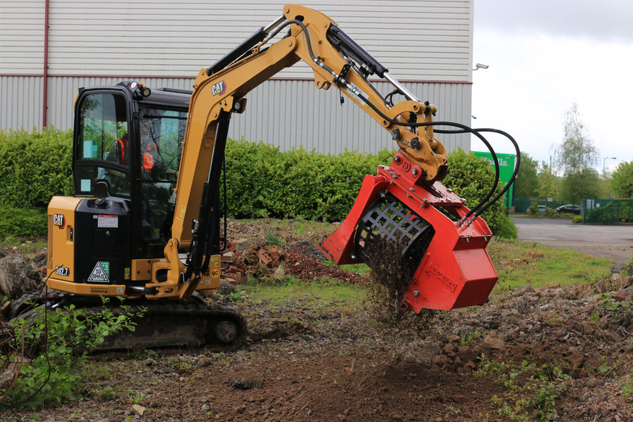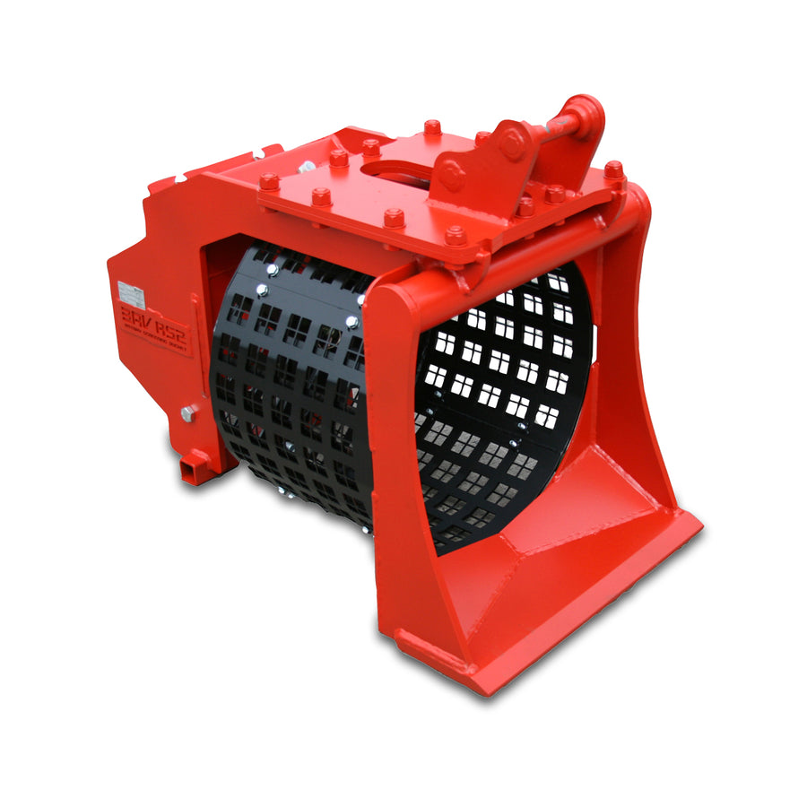 Tamis rotatif rapide et puissant pour mini-pelles de 2,5 à 3,9 tonnes. Le BAV-RS2 est équipé de cribles permettant trois calibres de sortie : 12,5 mm, 25 mm et 50 mm.